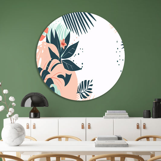 Tropische bladeren en bloemen illustratie aluminium muurcirkel
