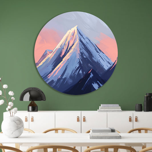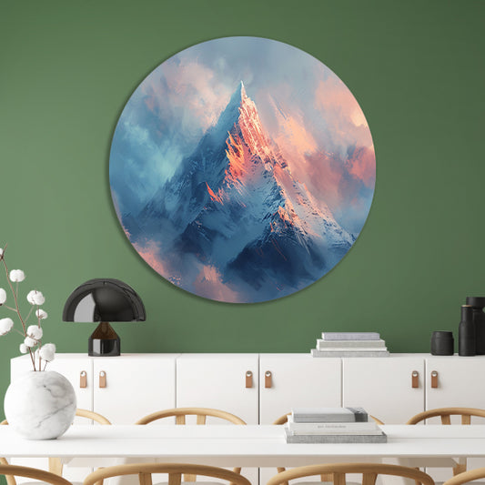 Digitale kunst van berg in ochtendlicht aluminium muurcirkel