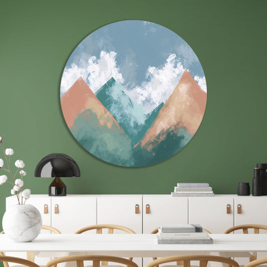 Digitale kunst van bergen en wolken aluminium muurcirkel