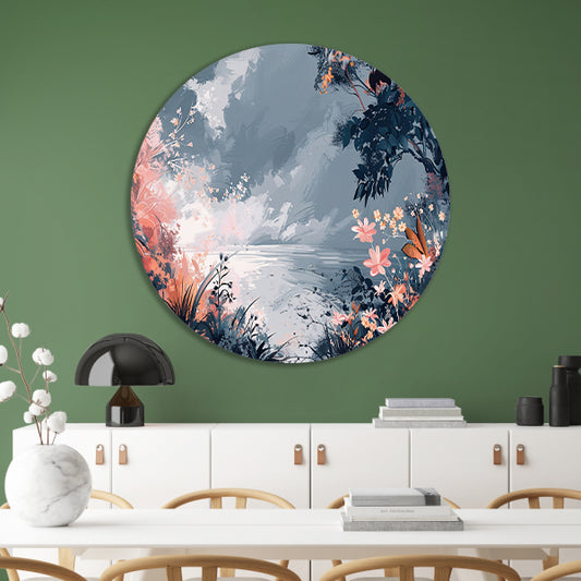 Betoverend bos in pastelkleuren aluminium muurcirkel