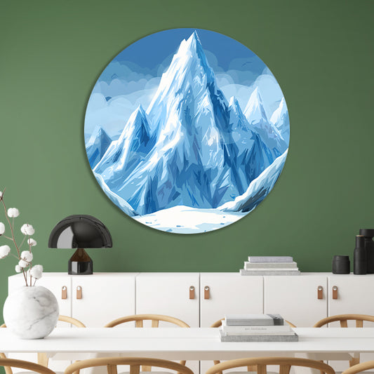 Prachtig digitaal kunstwerk van besneeuwde berg aluminium muurcirkel