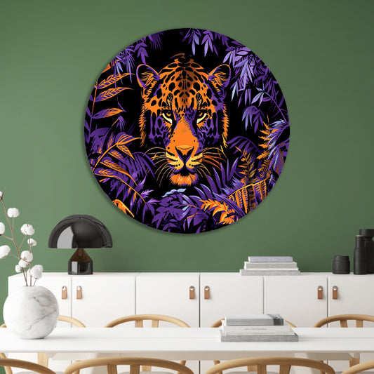 Popart schilderij van een kleurrijke jaguar aluminium muurcirkel