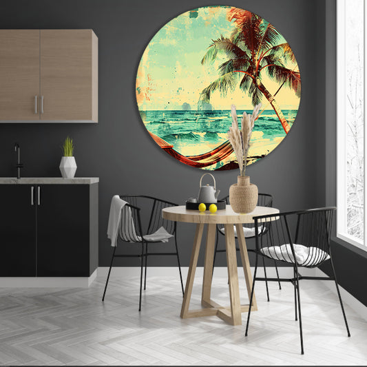 Vintage strand met tropische hangmat aluminium muurcirkel