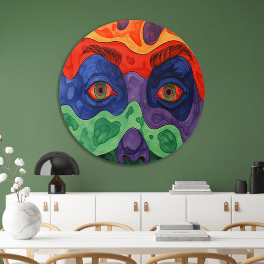 Hypnotische ogen in kleurrijke abstractie aluminium muurcirkel