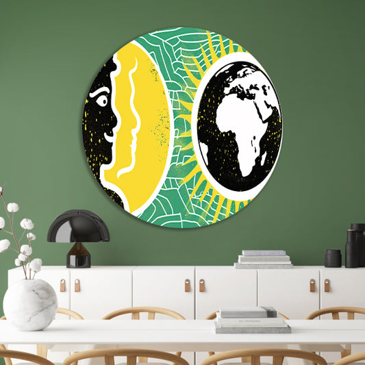 Geel portret naast aarde illustratie aluminium muurcirkel