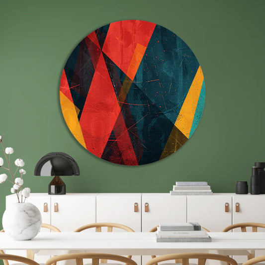 Kleurrijke geometrische abstracte compositie aluminium muurcirkel