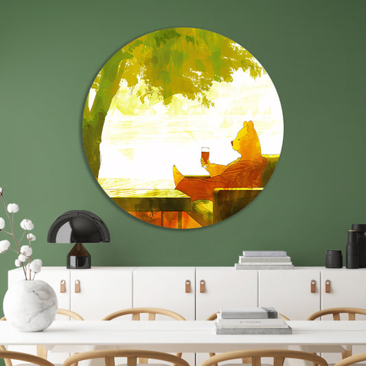 Ontspannen beer onder een groene boom aluminium muurcirkel