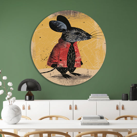 Modern muis in rood jasje met stropdas aluminium muurcirkel
