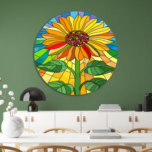 Kleurrijke zonnebloem in art nouveau stijl aluminium muurcirkel