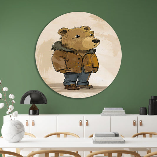 Digitale kunst van een beer in een jas aluminium muurcirkel