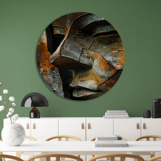 Digitaal portret van verweerd gezicht aluminium muurcirkel
