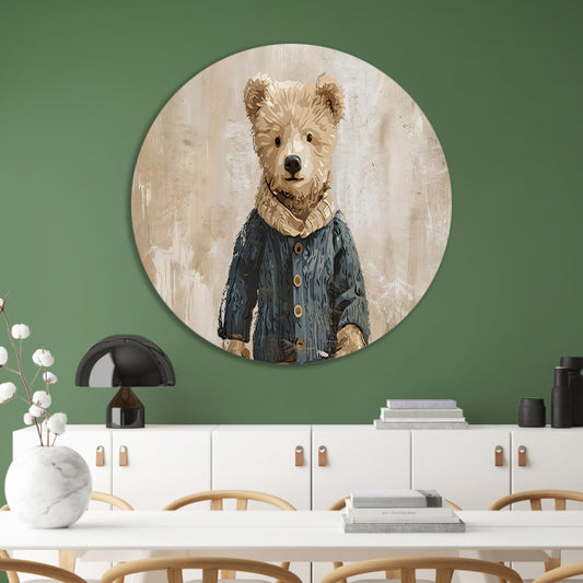 Slapende beer in gezellige warme tinten aluminium muurcirkel