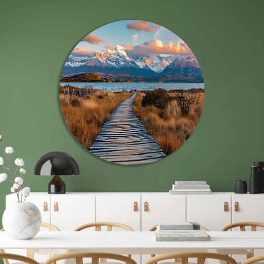 Adembenemend Patagonia landschap met bergen en meer aluminium muurcirkel