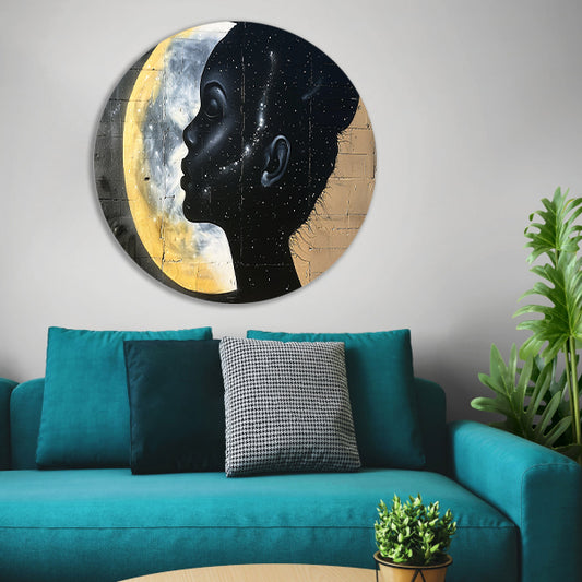 Silhouet van vrouw met sterren en maan aluminium muurcirkel