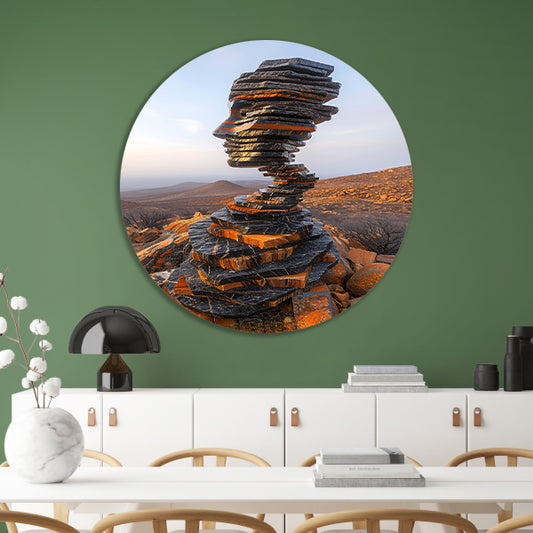 Stenen Gezicht in Uitgestrekt Landschap aluminium muurcirkel