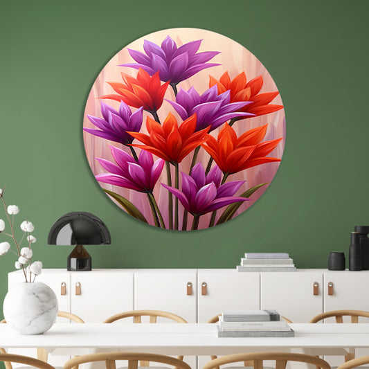 Kleurrijk abstract bloemenontwerp voor interieur aluminium muurcirkel
