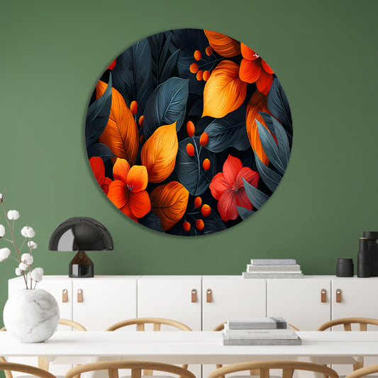 Moderne Dans van Oranje en Rode Bloemen aluminium muurcirkel