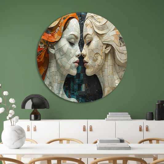 Gezichten van Mozaïek in Harmonische Symmetrie aluminium muurcirkel