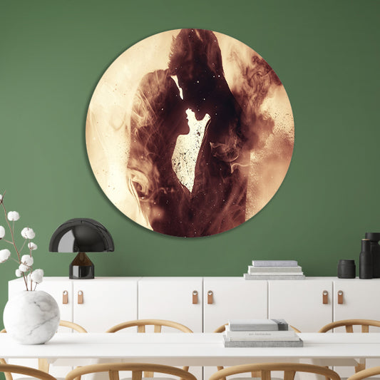 Omarmd Paar in Schemerlicht aluminium muurcirkel