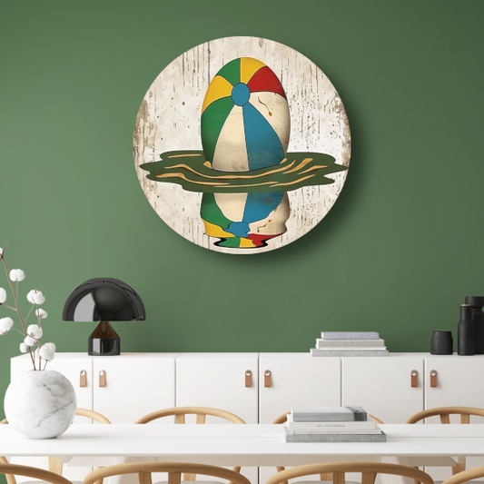 Vintage Strandbal in Levendige Kleuren aluminium muurcirkel