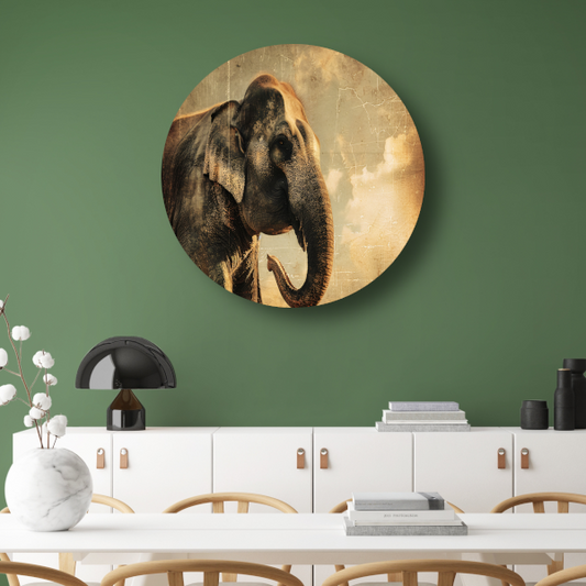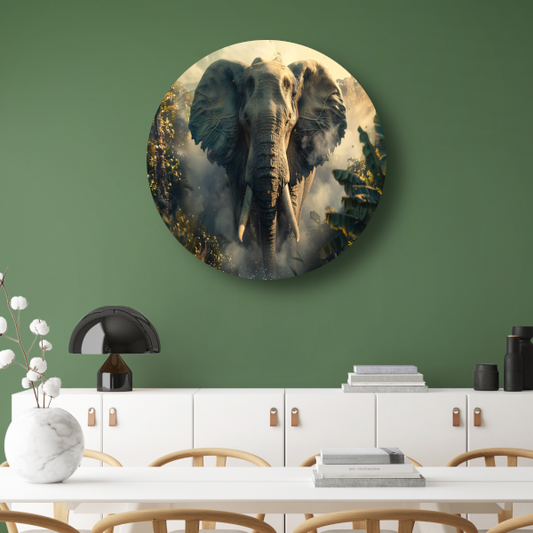 Majestueuze olifant in mistige ochtend aluminium muurcirkel