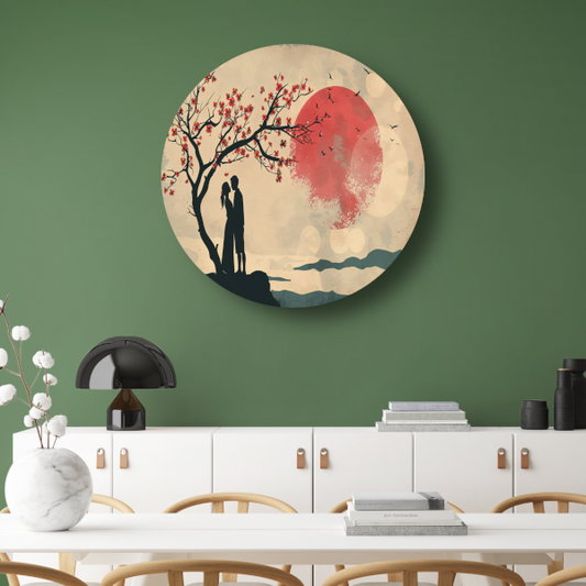 Romantische ontmoeting bij zonsondergang aluminium muurcirkel