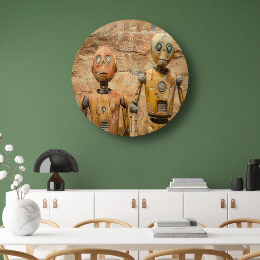 Robots Tegenover Oude Rotstekeningen aluminium muurcirkel
