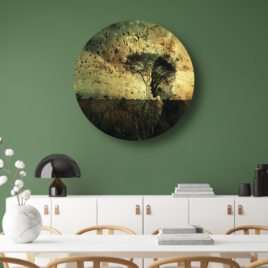 Mens en natuur versmolten in kunst aluminium muurcirkel