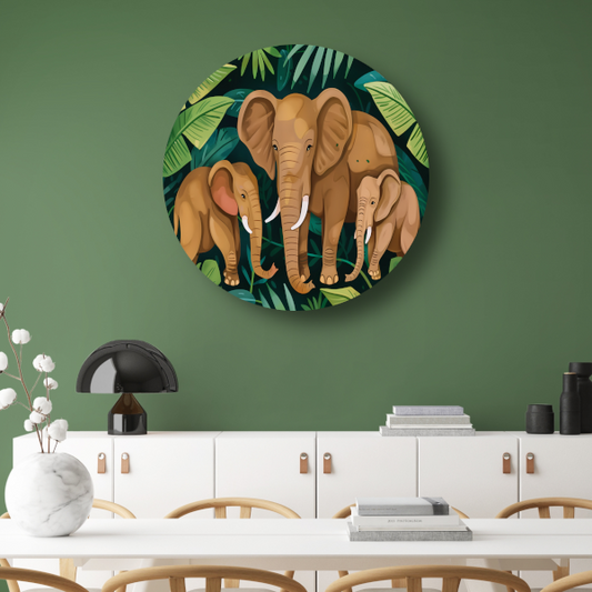 Familie Olifanten in het Groene Tropisch Woud aluminium muurcirkel