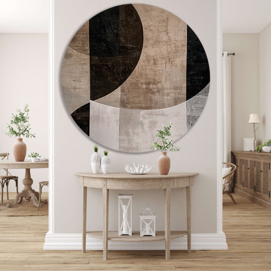 Minimalistische Sepia en Monochrome Abstractie aluminium muurcirkel