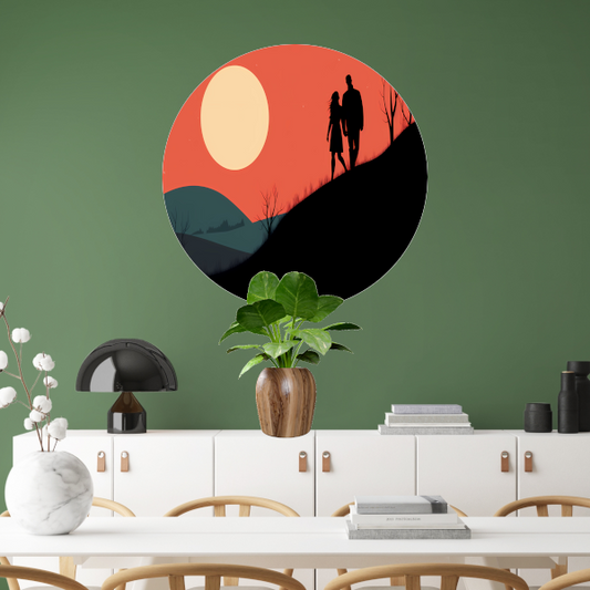 Silhouetten tegen de avondzon aluminium muurcirkel