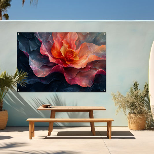 Dynamische abstracte bloem in levendige kleuren tuinposter