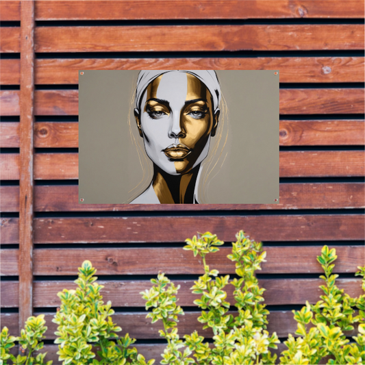 Gouden Accenten op Modern Vrouwelijk Portret tuinposter