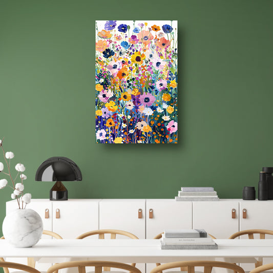 Kleurvol schilderij van bloemenveld in bloei acrylglas