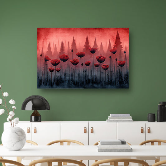 Surrealistische bloemen in minimalistisch bos canvas met baklijst