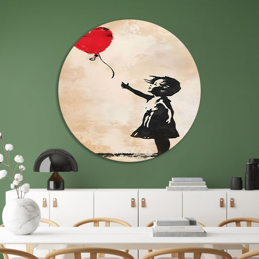 Meisje met Hartvormige Rode Ballon aluminium muurcirkel