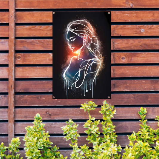 Vurige abstracte impressie van een vrouw tuinposter