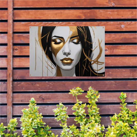 Gouden Sereniteit in Moderne Abstractie tuinposter