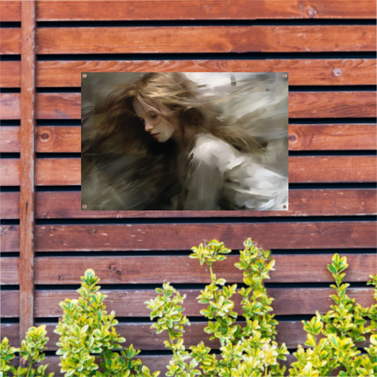 Vrouw in Beweging Bruin Beige tuinposter