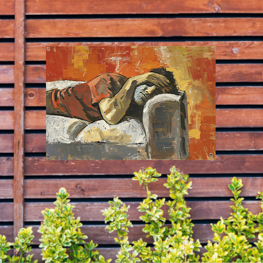 Slapende Boeddha in kleurrijke omhulling tuinposter