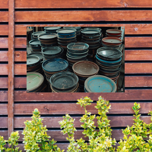 Gestapelde filmrollen in diverse kleuren tuinposter