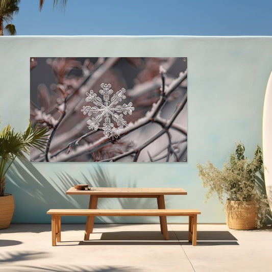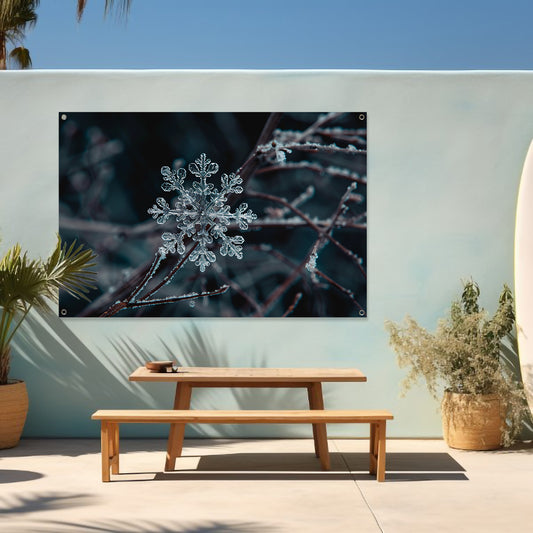 Gedetailleerde macrofoto van een sneeuwvlok tuinposter