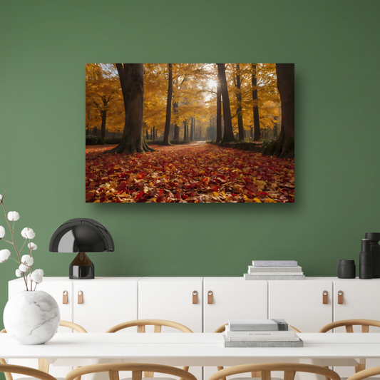 Herfstbladeren en Zonnestralen in het Bos canvas