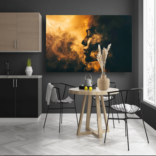 Gouden rook omhult vrouwelijk silhouetcanvas