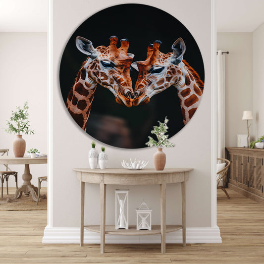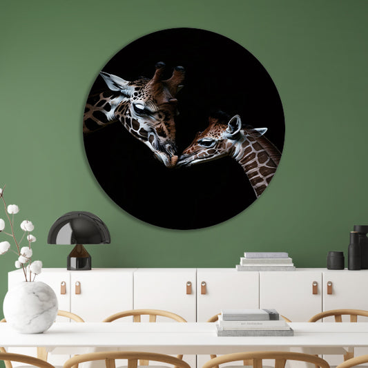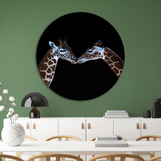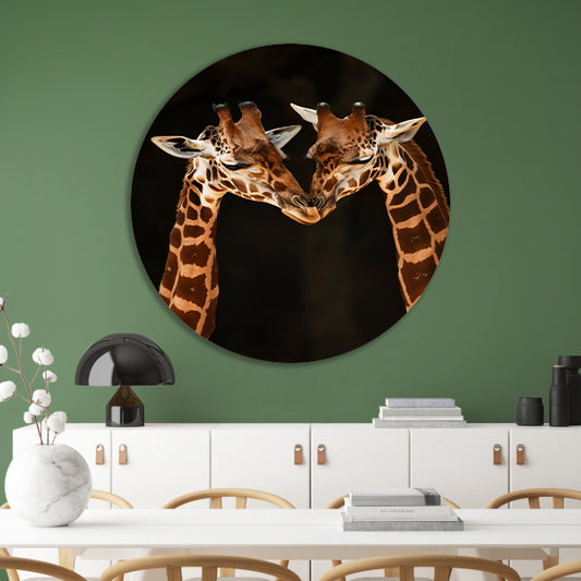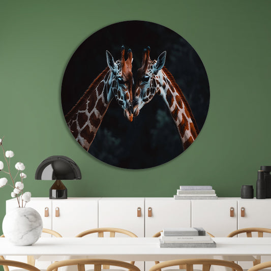 Twee giraffen in een intiem moment aluminium muurcirkel