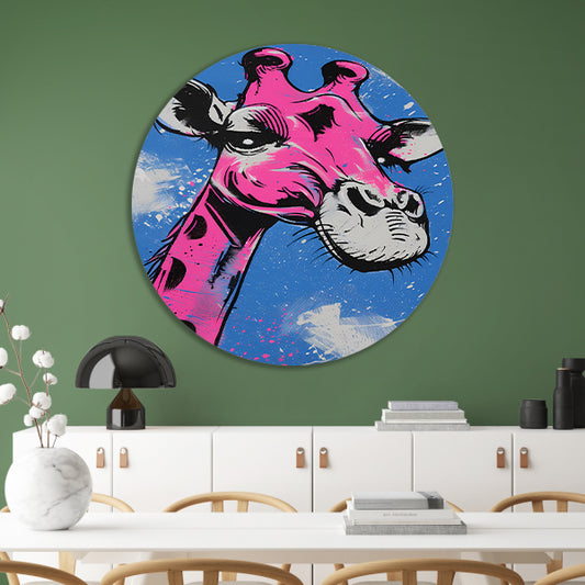 Kleurrijk en opvallend giraffe popart schilderij aluminium muurcirkel