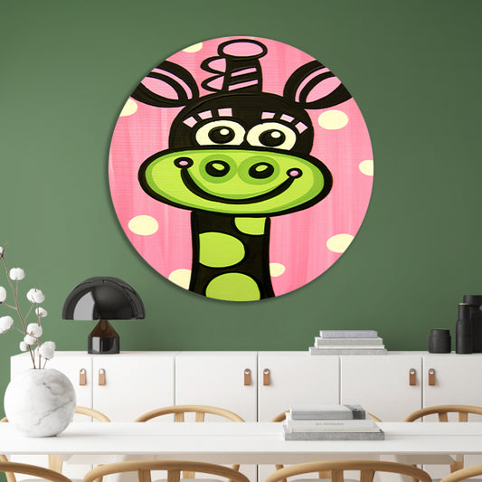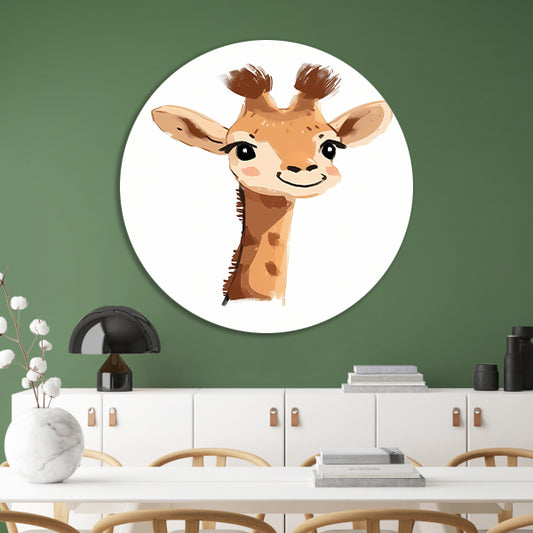 Schattige digitale tekening van een giraffe aluminium muurcirkel