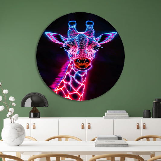 Neon futuristische giraffe met holografische lichten aluminium muurcirkel