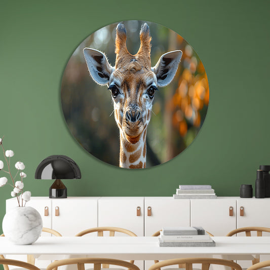 Realistisch portret van een giraffe aluminium muurcirkel