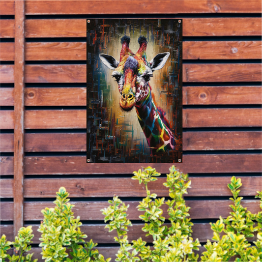 Explosieve Kleurrijkheid: Giraffe in Abstractie tuinposter